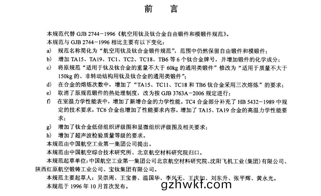 本(ben)规范适用(yong)于(yu)质(zhi)量不大(da)于(yu)150kg的、非(fei)转(zhuan)动(dong)结构用钛(tai)及(ji)钛(tai)合金的(de)通(tong)用(yong)类锻件(jian)。航空用钛锻(duan)件(jian)国(guo)军(jun)标(GJB 2744A-2007)的详(xiang)细(xi)内(nei)容,凯泽金(jin)属整(zheng)理如(ru)下(xia):