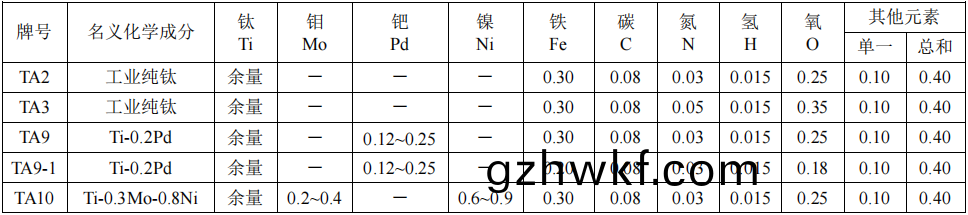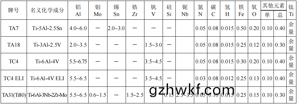 表(biao)一 钛(tai)合(he)金的(de)化学成分(%)