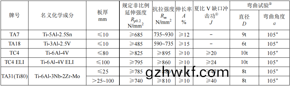 4)钛合金(jin)的力(li)学(xue)性能应满(man)足(zu)表(biao)二的规(gui)定(ding)。
