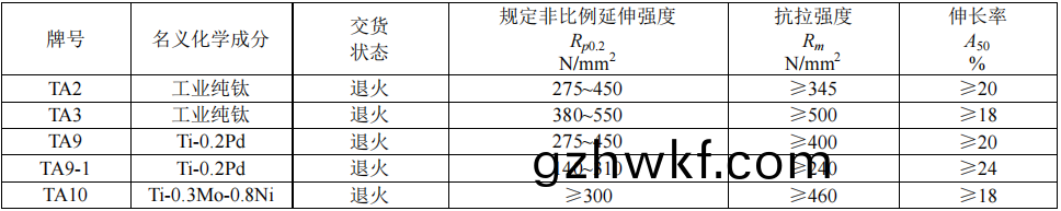 表(biao)四(si) 钛及(ji)钛(tai)合金管的(de)力学性能(neng)