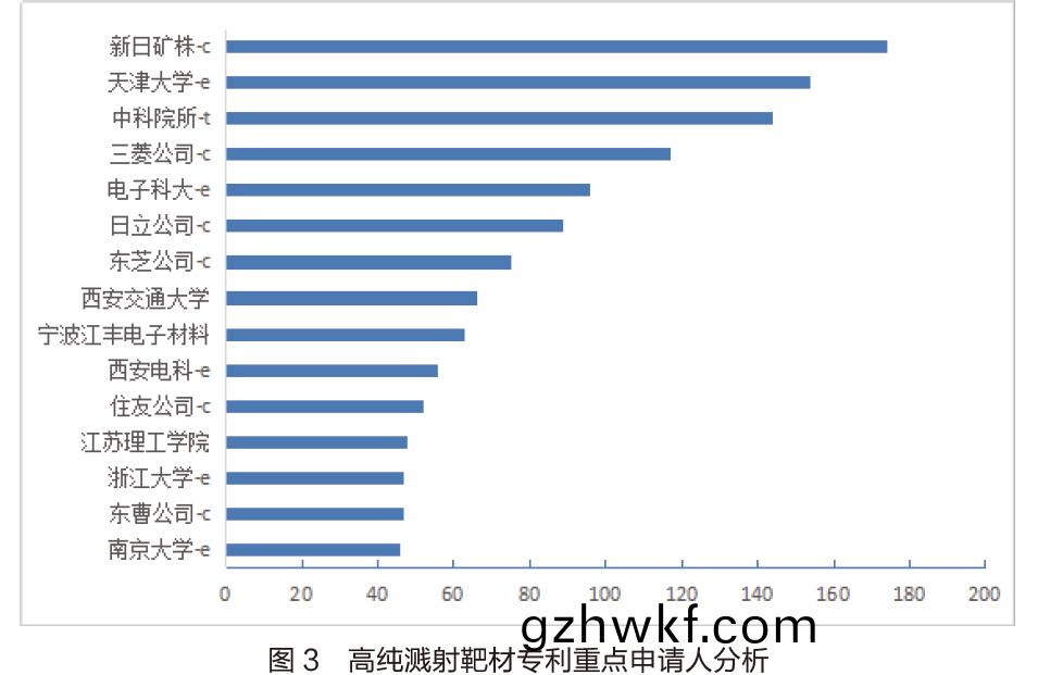 完备的产(chan)业(ye)链,占据(ju)主导(dao)地位(wei),尤其(qi)是日本(ben)新(xin)日矿(kuang),是(shi)全球(qiu)最(zui)大(da)的靶材供(gong)应(ying)商(shang);而国内(nei)靶材(cai)申请人虽然近年(nian)来经过一(yi)定的研(yan)发(fa)投入(ru)、技(ji)术(shu)积累(lei),取得了(le)一定(ding)的成果(guo),掌握了部分(fen)超