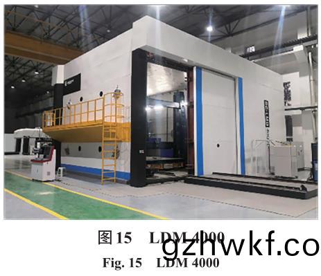 在 LMD 设备制造(zao)领(ling)域(yu),以美国(guo) EFESTO、德国EOS、西(xi)安(an)铂力(li)特(te)、南(nan)京(jing)中(zhong)科(ke)煜(yu)宸、鑫精(jing)合激光(guang)等(deng)为代(dai)表(biao)的多(duo)家(jia)企业均(jun)已研(yan)发(fa)出工(gong)业(ye)级 LMD 设(she)备(bei),国(guo)内外(wai)典型(xing)LMD设(she)备(bei)主要参(can)数(shu)如(ru)表3所(suo)示(shi)。南京(jing)中科(ke)煜(yu)宸研发(fa)的(de)大型智能化双(shuang)光束装备(bei)性能(neng)指(zhi)标达到(dao)国际(ji)先进(jin)、国(guo)内领先的水(shui)平,如(ru)图(tu) 15所示,是国际上首次(ci)提(ti)出采用双万瓦级(ji)激光(guang)同(tong)步(bu)送(song)粉打印(yin)技术,沉积(ji)速度可(ke)达(da) 700 cm3/h,设备(bei)刚(gang)性(xing)成(cheng)型(xing)尺(chi)寸可达4 m×3.5 m×3 m,柔性(xing)成(cheng)型(xing)尺(chi)寸达(da)13 m×3.5 m×3 m,加工(gong)能力(li)覆盖(gai)了(le)目前航(hang)空钛(tai)合(he)金(jin)主承力(li)结(jie)构件的所有门类(lei),满(man)足未(wei)来型号及(ji)特殊(shu)构件(jian)制造(zao)需(xu)求(qiu)。此(ci)外(wai),航(hang)空(kong)工业(ye)成(cheng)飞集(ji)团(tuan)也研制(zhi)了大型LMD同轴送粉(fen)设(she)备(bei),并实现(xian)了飞机增材制造工(gong)程化应用。降(jiang)低设备(bei)加(jia)工(gong)使用(yong)成本将是LMD设备未(wei)来(lai)的(de)研究(jiu)方(fang)向(xiang)。大型(xing)构件(jian)的(de)应力控(kong)制和变(bian)形(xing)开(kai)裂(lie)是LMD技(ji)术面临(lin)的关键(jian)难题(ti)。